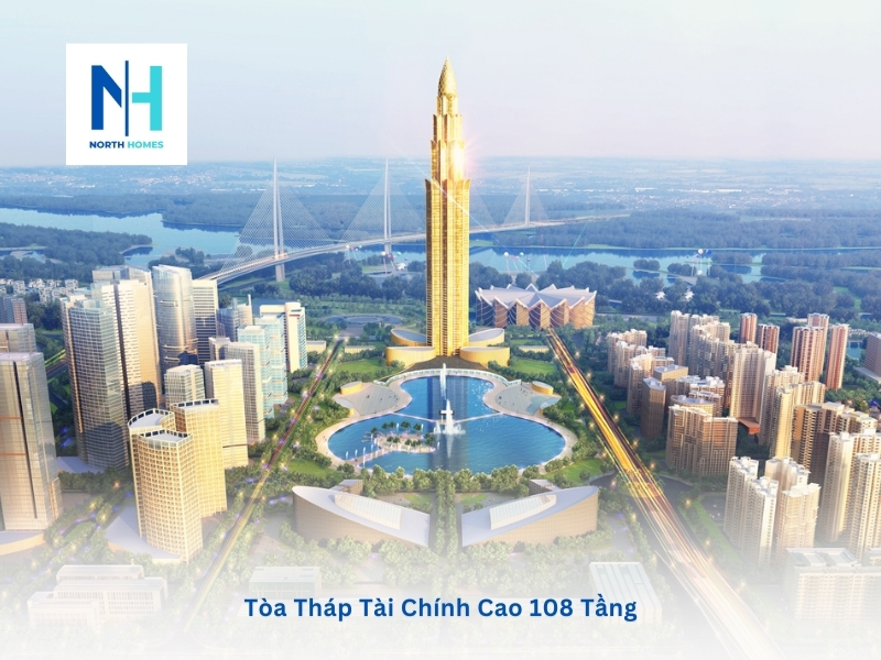 - Thiết Kế Kiến Trúc Độc Đáo: Tòa tháp tài chính cao 108 tầng là điểm nhấn kiến trúc quan trọng của dự án. Với thiết kế hiện đại và độc đáo, tòa tháp không chỉ trở thành biểu tượng của thành phố mà còn là trung tâm tài chính và kinh doanh chính. Bản đồ quy hoạch Thành phố Thông minh Đông Anh cho thấy tòa tháp được đặt tại vị trí chiến lược, ngay điểm đầu vào của cửa ngõ Thủ đô và nhìn về phía cầu Nhật Tân, tạo nên một cảnh quan ấn tượng và nổi bật.